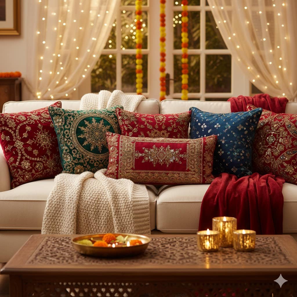 5. Festive Cushion Covers & Throws 🛋️
