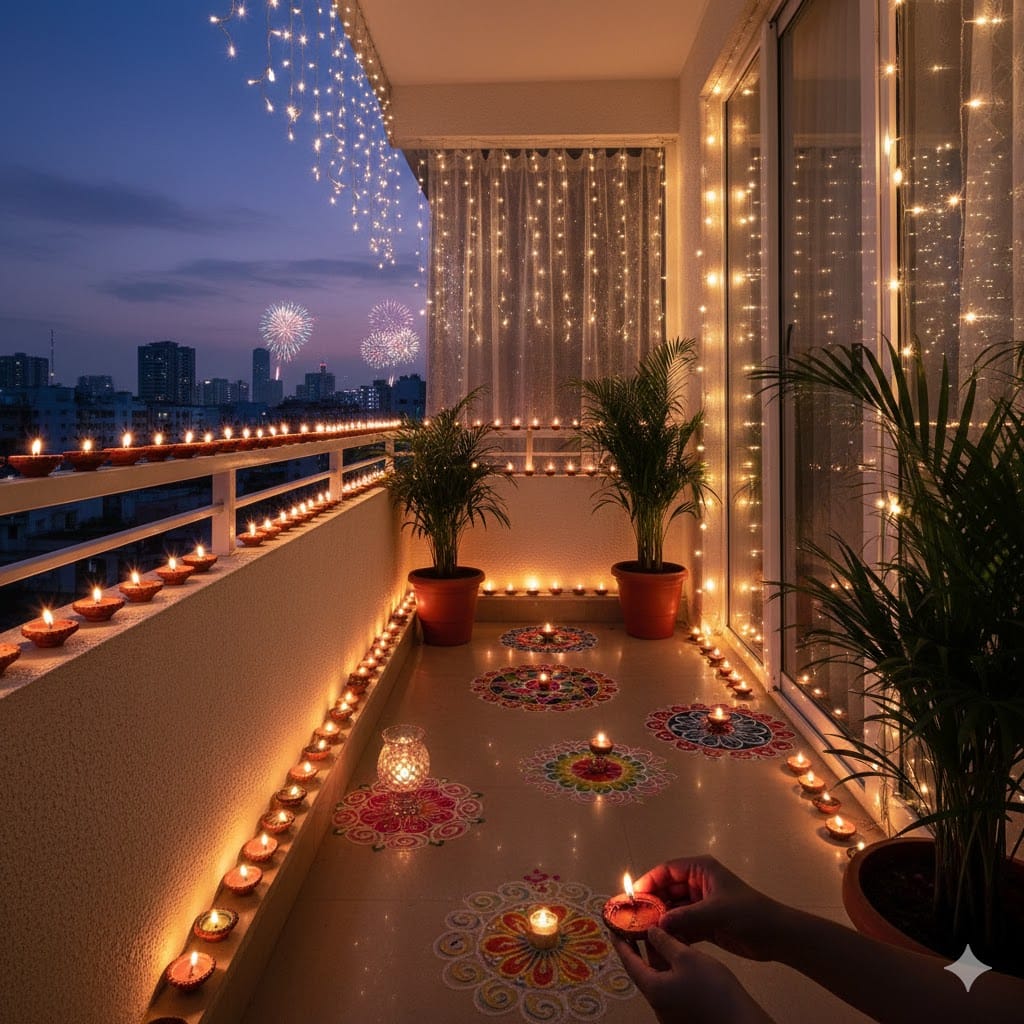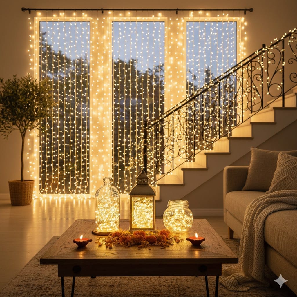 - Mix old with new – Combine traditional diyas with modern fairy lights.