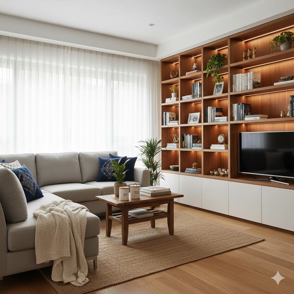 The living room is often the heart of the home, where families gather and entertain guests. To maximise space, consider multifunctional furniture such as ottomans with storage, coffee tables with shelves, and built-in bookcases.