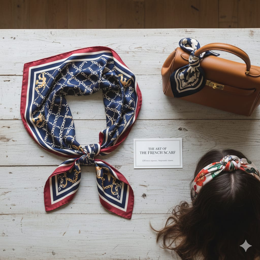 If there’s one accessory synonymous with French style, it’s the scarf. French women have elevated the simple scarf into an art form, using it to add colour, pattern, and polish to even the most basic outfits.