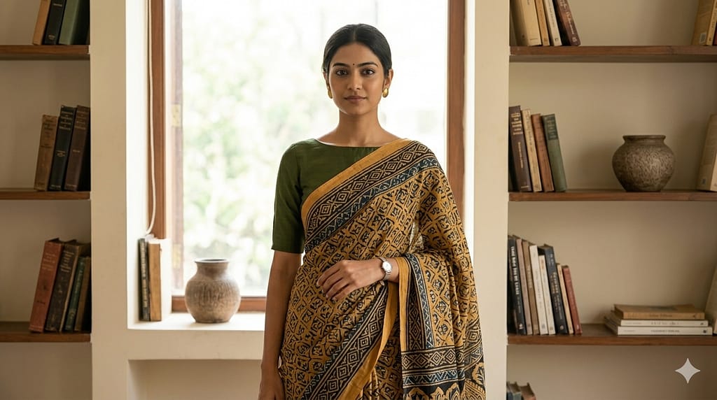 For work, professional events, or modern social occasions, the kalamkari saree is more adaptable than most people realise.