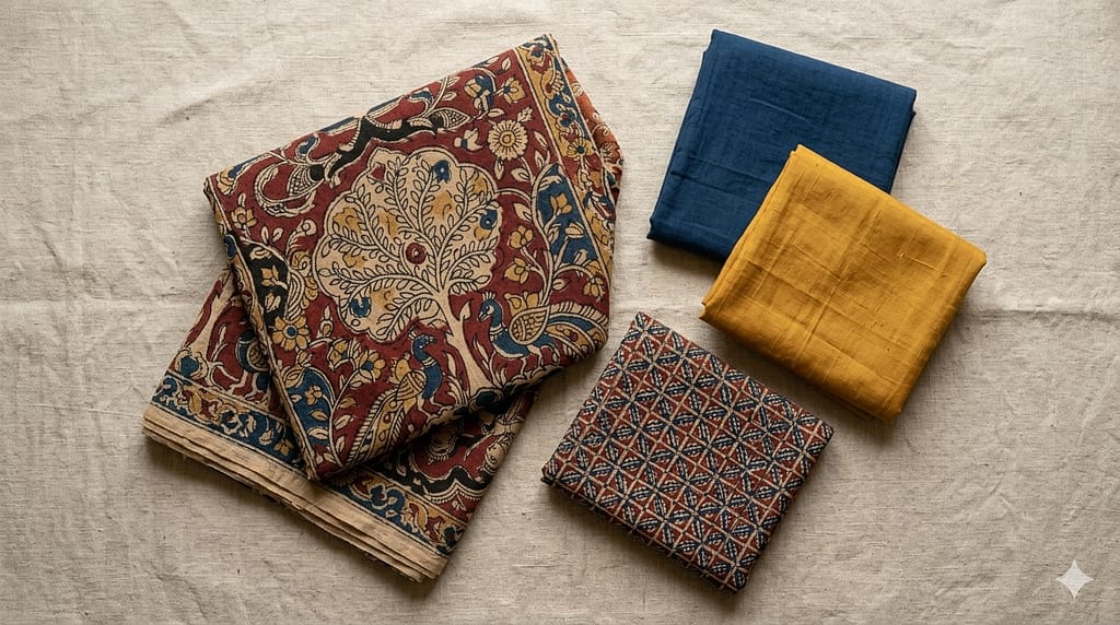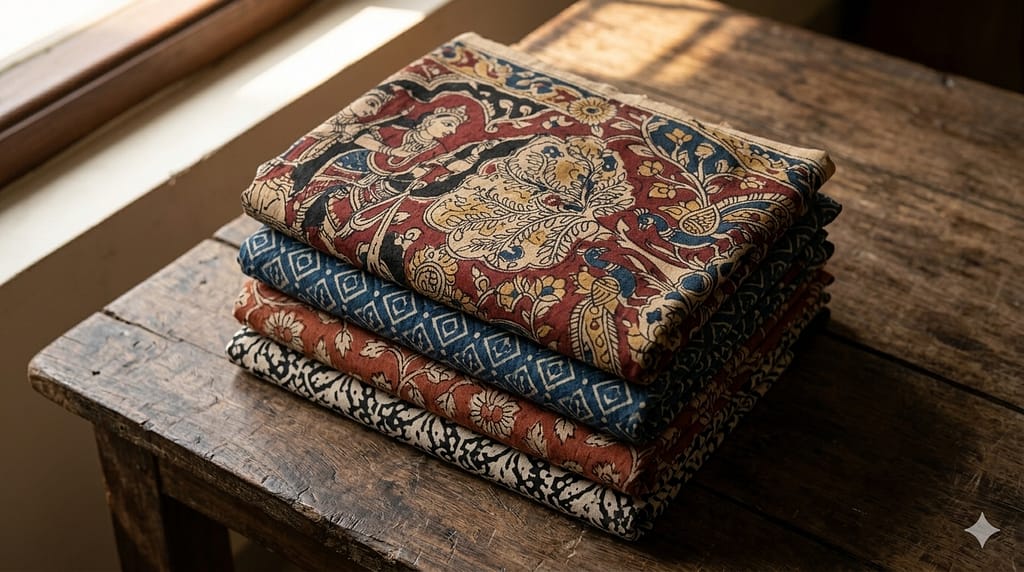 In a wardrobe built around intentional choices, one well-chosen kalamkari saree does more work than five trend-driven synthetic pieces.