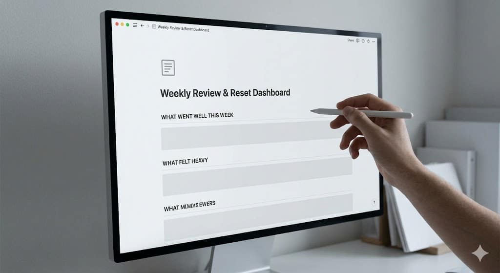 I found the Weekly Review and Reset Dashboard template. It looked simple, which made me doubtful. How could something this basic actually help? I had tried planners before. Digital dashboards. Apps with notifications. They always felt like busywork after a few weeks.